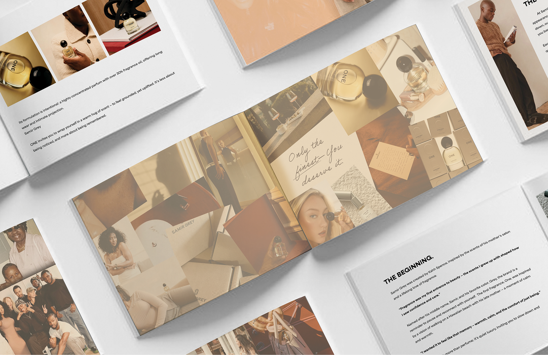 Created for Kah Spense, the CEO of Samir Grey, the book uses refined typography, warm imagery, and a clean, minimal layout to communicate the brand’s modern and understated aesthetic. The final design presents the brand through a polished editorial lens while remaining true to its core visual language.